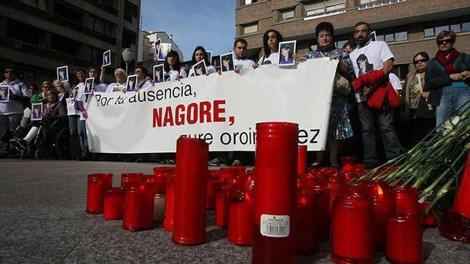 En la Plaza del Vínculo de Pamplona, tras una pancarta en la que se leía "Por tu ausencia, NAGORE, zure oroimenez", un centenar de personas, muchas de ellas vestidas con una camiseta con la fotografía estampada de Laffage, han guardado varios minutos de silencio.