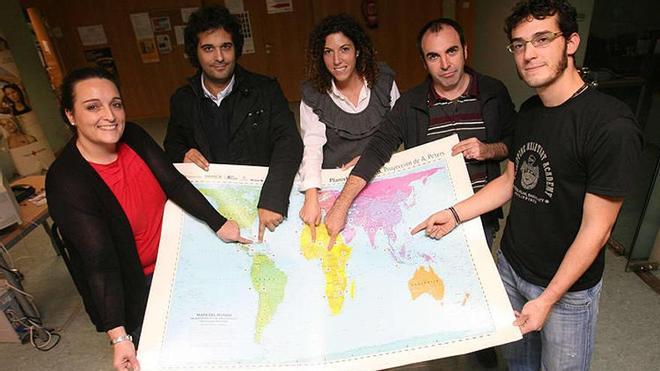 HICIERON risas con el mapa mundi. Jasone, que es la administradora en Haití, y Arnold, el vecino, amigo y delegado en la República Domicana, lo tenían crudo para poner el dedo en la misma isla. Mientras, Pablo, el que se fue a Filipinas, se sentía el desarraigado: "Me vais a dejar aquí solo en todo Asia". Esta historia que reúne al personal de Cruz Roja Navarra que se encuentra realizando misiones internacionales, se produjo el miércoles por la tarde porque ahora, en estas fechas, se conjuran los astros de tal forma que es posible que estos hombres y mujeres esparcidos por medio mundo se reúnan en torno a la misma mesa, sujeten al tiempo el mapa de la foto y nos enseñen a corazón abierto en qué consiste esta cooperación que, para algunos, es ya un arnés, tan férreo como inexplicable, que les sostiene alejados en otra vida, lejos, pero sin olvidar nunca de dónde vienen.