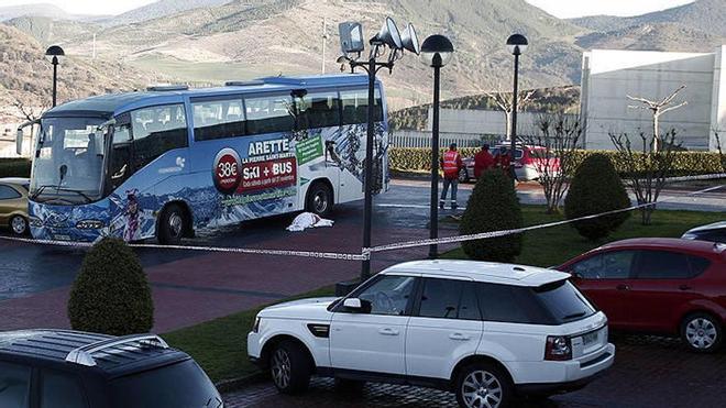 A las 6.19, el suceso. Mambrilla resbaló y cayó cerca de la rueda izquierda trasera del autocar al que intentaban acceder los asistentes al guateque.