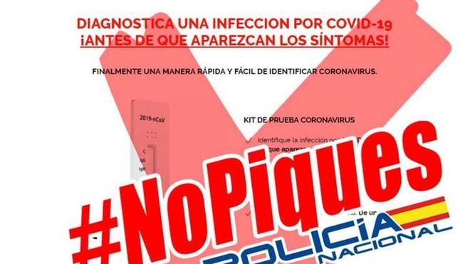 MADRID. La Policía Nacional ha alertado este viernes de que ha localizado unas 12.000 páginas web relacionadas con la temática de la pandemia de coronavirus que se han creado "al unísono" para difundir actividades ilícitas como ofrecer una falsa vacuna. Además, este cuerpo policial ha lanzado una guía de buenas prácticas para evitar la difusión de bulos en redes sociales.