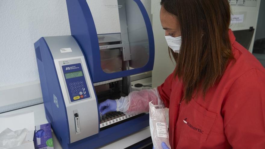 Naiara Lizarraga extrae el ADN ataviada de los EPI correspondientes para no contaminar la muestra.