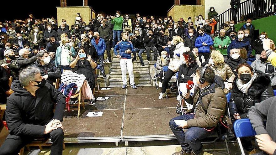 Después de jugar su último partido como pelotari profesional, recibir infinidad de regalos de manos de familiares, amigos y representantes de su empresa (Baiko) y de diferentes instituciones (Ayuntamiento de Goizueta, Federación Navarra de Pelota Vasca y LaCaixa) y emocionarse especialmente con el vídeo de repaso a su trayectoria vital y deportiva con el que concluyó el homenaje que le tributó su Goizueta natal en el frontón (la fiesta continuó después con una cena), a Aimar Olaizola le tocó hablar con los periodistas y reconoció una felicidad que ya se le adivinaba en el rostro. "Estoy muy contento porque al final ha sido todo muy bonito y he tenido un montón de sorpresas que no esperaba", dijo el ya exmanista profesional, que no tardó en explicar los motivos por los que eligió Goizueta, el lugar donde nació hace 42 años (los cumplió ayer mismo), como sede para colgar el gerriko: "Quería jugar aquí porque sentía que le debía algo al pueblo y ahora creo que le debo más que antes".