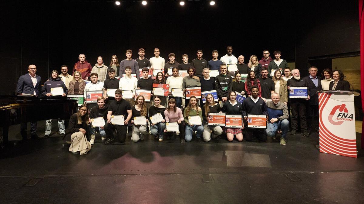 La X Gala del Atletismo Navarro reunió a deportistas, técnicos, clubes e instituciones en la Casa de Cultura de Zizur Mayor en una cita muy especial para el atletismo de la comunidad. La Federación Navarra de Atletismo, de este modo, premió a los mejores atletas de la temporada 2025 y se reconoció el esfuerzo colectivo que impulsa este deporte año tras año. Además de los galardones principales, uno de los momentos más destacados fue la entrega de diplomas a los atletas que han conseguido un récord navarro durante el año, un total de 75 personas, reflejo del excelente nivel competitivo alcanzado.
