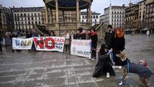 Sociedad Una treintena de personas se concentran en Pamplona para rechazar el uso de perros en las batidas de caza