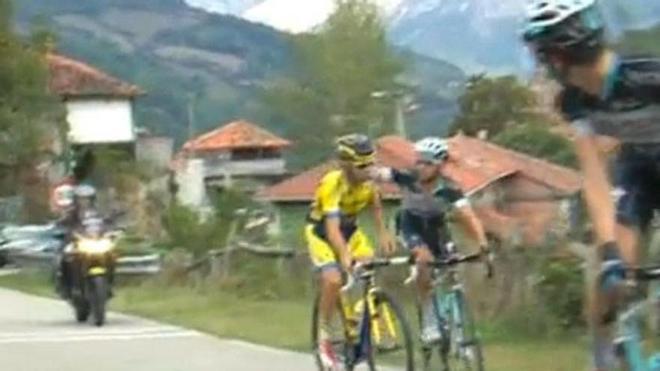ASTURIAS. En una escapada de trece corredores, Brambilla y Rovny han intercambiado varios manotazos en plena carrera.