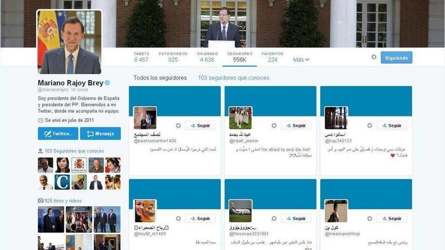 MADRID. En concreto, la cuenta de Rajoy registraba a las 11.40 horas una cifra de seguidores de 593.000 seguidores, muy superior a las de días atrás. No obstante, en apenas unos minutos esta cifra se rebajaba hasta los 587.000 seguidores, lo que podría indicar que el equipo que lleva la cuenta estaría trabajando en eliminar estos perfiles.