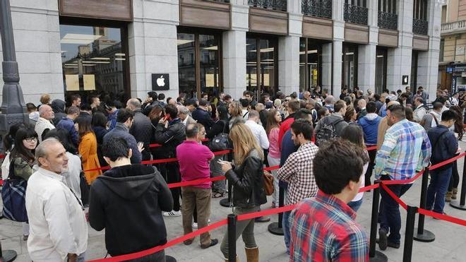 MADRID. Un año más la expectación ante el lanzamiento de las novedades móviles de Apple se ha materializado en colas en torno a las tiendas de la compañía de la manzana -especialmente en Madrid, Barcelona y Murcia- y también de las de algunos operadores de telefonía.
