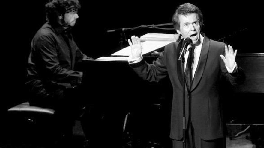 pamplona. El cantante Raphael ofreció ayer un concierto en la sala principal de Baluarte, donde desgranó, una vez más, los principales temas de su carrera, haciendo las delicias de sus incondicionales. En la imagen, el artista, durante un momento de su actuación, enmarcada en la gira estatal titulada Raphael: 50 años después, en la que vuelven a sonar canciones ya míticas como Mi gran noche, Digan lo que digan, Yo sigo siendo aquél, Como yo te amo o En carne viva. Sobre el escenario del auditorio pamplonés, acompañó al intérprete de Linares el pianista Juan Esteban Cuacci. Foto: mikel saiz