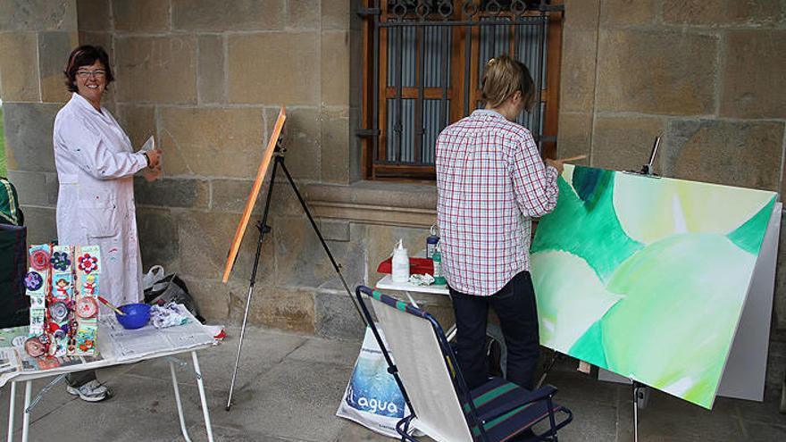 Desde las 10 hasta las 16 horas, los pintores desafiaron a los nubarrones que poblaban el cielo pamplonés y comenzaron sus creaciones a la par que comentaban sus obras con los cientos de curiosos que acudieron a observar a los artistas.