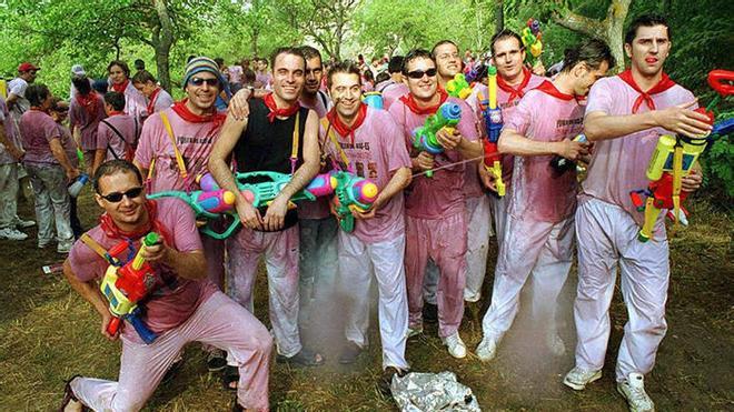 Botas de vino, sulfatadoras, cubos, pistolas de agua, porrones y algunos "artilugios" orientales de plástico, que pueden almacenar hasta dos y tres litros de vino, han sido algunas de las "armas" utilizadas hoy en el "campo de batalla", donde "todo vale", ha añadido el concejal.