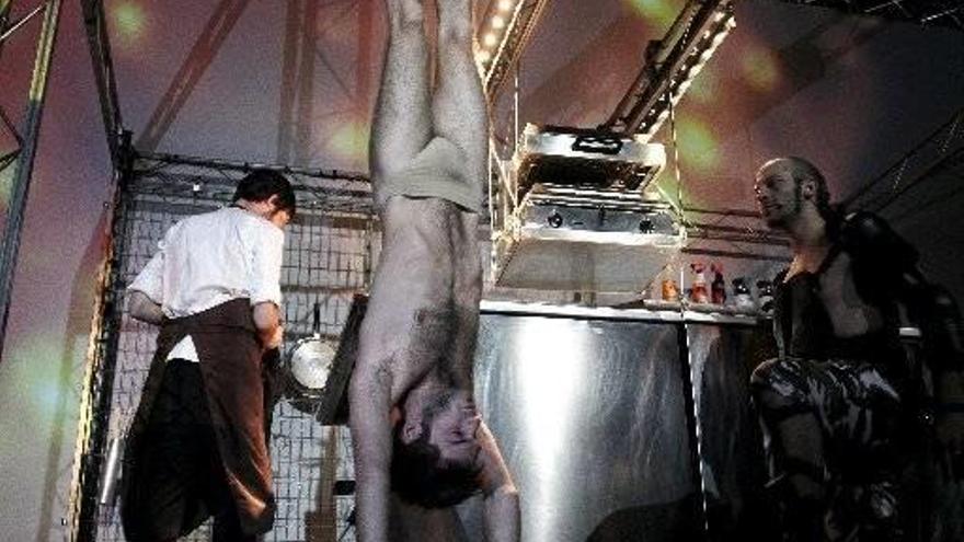 La función, que se podrá ver hasta el 19 de diciembre en los Teatros del Canal, recrea la historia del emperador Tito, el general romano que regresa a su tierra victorioso tras una larga batalla con los godos en el norte, y, a partir de ahí, se desata una espiral de violencia y barbarie. Fura dels Baus lleva a escena, con un estilo muy provocador, este montaje en el que introducen el único sentido que no había tocado antes, el del gusto, para convertir así el teatro en un suculento banquete. Basada en la obra más sangrienta de Shakespeare, Degustación de Titus Andrónicus, con versión de Salvador Oliva, traslada al público a la época del Imperio Romano, en un viaje lleno de experiencias únicas. La cuarta pared desaparece por completo: los actores se mueven entre los espectadores, quienes asisten a la representación de pie, rodeados por 4 pantallas de proyección. "Con Degustación de Titus Andrónicus damos un paso más; es un híbrido entre nuestro lenguaje de los años 80 y una evolución, pues hemos pasado del grito a la palabra. Además, la obra nos abría una puerta a la gastronomía", añadió el director artístico de La Fura dels Baus, Pep Gatell. Para la preparación de la degustación, la compañía ha contado con la colaboración del que está considerado el quinto mejor cocinero del mundo, Andoni Luis Aduriz. "Cuando La Fura nos propuso hacer este proyecto, lo tomamos como un reto, nos pareció una idea muy innovadora y era imposible decir que no", confesó Aduriz. Dirigidos por el vasco, dos cocineros serán los encargados de llenar el teatro de texturas, olores y sabores con recetas recuperadas de la época romana, como el gárum, una salsa muy especiada hecha a base de pescado macerado al sol. Además, servirán un plato cocinado a partir de la supuesta carne humana de uno de los protagonistas para ese ágape caníbal que da por finalizado el espectáculo. "Será un menú sorpresa, la gente va a creer estar comiendo algo muy parecido a un romano de verdad, incluso la comida tendrá los tatuajes del protagonista", adelantó el chef. Este suculento manjar podrá ser degustado por 28 asistentes a cada función, que serán elegidos por sorteo en www.furatius.com.