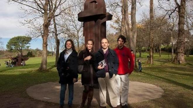 Los eibartarras Ana, Mikel, Malen y Katrin recorrieron por primera vez la finca hernaniarra. "El paisaje llama la atención. Este museo no se debe cerrar; es una maravilla", señaló Ana.