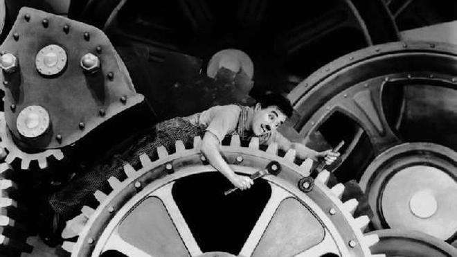 Corría el año 1936 y Charles Chaplin todavía no había estrenado ninguna película sonora. Nueve años después de que El cantor de jazz revolucionara el séptimo arte, el legendario cómico había hecho oídos sordos a las demandas del nuevo público y seguido su trayectoria con títulos como Luces de ciudad. Mientras observaba la caída de estrellas como Gloria Swanson o Buster Keaton por la llegada de la palabra, Chaplin se aferró a la vieja escuela, a su tierno y silente vagabundo que, con bombín y zapatones, había conquistado a millones de espectadores con sus capacidades mímicas.