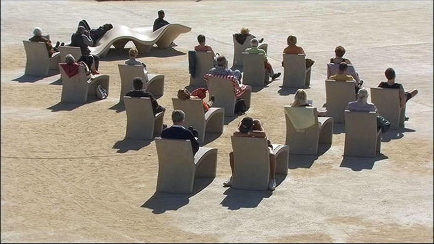 el 'no-lugar' Precisamente, todo comenzó por el interés compartido de Álvarez y el guionista Arturo Redín por lo que estaba sucediendo con la especulación, pero durante la investigación "el tema se fue ensanchando" hacia otros aspectos, explica la realizadora. Ahí entraron en juego conceptos como el de Marc Augé, que habla de no-lugares como "aquéllos que nos podemos encontrar en cualquier parte del mundo". A medida que avanzaba en la investigación, el equipo fue centrándose en la idea de que las ciudades del mundo acaban pareciéndose, como si su destino fuera ése, ser copias de un mismo decorado en el que hay barrios dormitorio, centros comerciales, las mismas tiendas... "Todas con la misma distribución del espacio para dirigir la mirada del consumidor", apunta Álvarez, que subraya la importancia que ha tenido el proceso de investigación en la realización del filme. Un proceso en el que trabajó con Arturo Redín y con cinco alumnos del Máster en Documental de Creación de la Universidad Pompeu Fabra. En referencia a los estudiantes, Mercedes Álvarez califica su labor de "fundamental". "No se trataba sólo de hacer un proyecto para las salas de cine, sino de que todos pusiésemos en marcha una investigación cinematográfica", dice, e insiste en que los cinco alumnos han sido parte de la película al mismo nivel que el resto del equipo, compuesto por tres profesionales con las que la realizadora ya trabajó en El cielo gira.