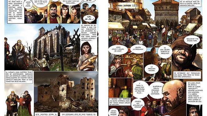 Desde este próximo 29 de octubre y durante los siguientes dos fines de semana, los lectores de DIARIO DE NOTICIAS podrán hacerse por solo un euro más con esta colección de cómics, que forman un relato histórico realizado con gran rigor y orientado especialmente a la divulgación social sobre los últimos días del Reino de Navarra y su conquista por parte de Aragón y Castilla.