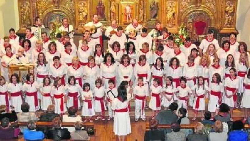 La misa estuvo oficiada por el párroco José Manuel García de Eulate, acompañado en la concelebración por Pedro Mª Flamarique, que en varios momentos de la eucaristía dedicó palabras de agradecimiento a quienes fueron fundadoras de esta escuela jotera y a quienes han formado parte de ella. El colofón a los cánticos de esta singular Misa navarra llegó cuando las voces más veteranas se colocaron en dos largas filas a ambos laterales de la iglesia, con los más jóvenes ubicados en la parte trasera del templo y en el coro, y al unísono cantaron Es morenica y galana dedicada a la Virgen de Ujué.