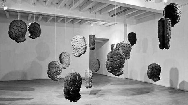 Los elementos que forman parte de estas dos series se presentan en el Museo de Albarracín en dos espacios diferenciados, dos estancias de un antiguo palacio. “No se puede hablar de obras individuales sino de un montaje o una instalación. Por ejemplo, dentro de Cosas y causas, he colocado 16 elementos suspendidos del cielo, 16 cabezas salpicadas de elementos simbólicos, distintos en cada una, con una parte roja y una parte negra”, apunta. El medio o la herramienta a través del que Garraza crea sus piezas es la cerámica, ya que le permite el control del proceso de creación. “Me gusta la arcilla, la tierra, el gres... Porque son materiales que me permiten controlar todo el proceso. La cerámica es para mí un medio, una herramienta, pero me considero escultor”, afirma.