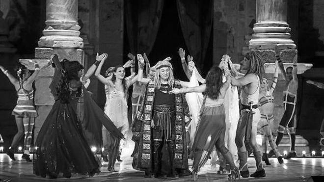 mérida - La historia de fuerza y amor del semidiós mitológico Hércules sirve de materia prima para que durante hora y media el Teatro Romano de Mérida pase a ser el Circo Olimpus, un circo colorido y nostálgico, que “tras su gira triunfal por el mundo y el inframundo” se estrena en el Festival en forma de musical. Bailarines, acróbatas, cantantes y hasta la mujer barbuda acompañan en este montaje de la 61 edición del Festival Internacional de Teatro Clásico de Mérida que, en su recta final, ha llegado a su parte más regional, con el estreno de dos producciones extremeñas, pues a este musical le seguirá El Cerco de Numancia, que clausurará el festival.
