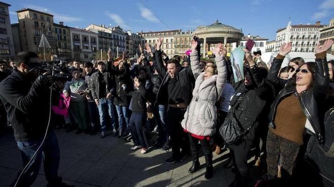 PAMPLONA. Varias decenas de personas han acudido este mediodía de viernes a la Plaza del Castillo de Pamplona para mostrar su apoyo a la concursante navarra Sofía, de 'Gran Hermano 16'. La concentración, organizada por el propio programa de Telecinco, tenía como objetivo grabar un vídeo que se emitirá en la final del famoso reality show, en el que la pamplonesa ha quedado finalista.