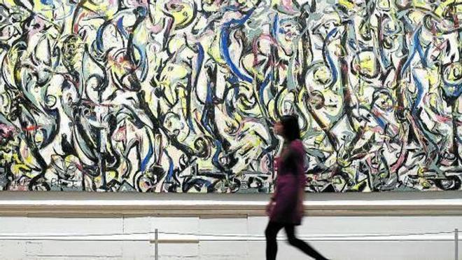 rothko, pollock, guston... Sobre estas líneas, una empleada camina junto a la obra Mural (1943), del artista estadounidense Jackson Pollock, durante un pase para la prensa de la exposición Expresionismo Abstracto, en la Real Academia de las Artes de Londres. La muestra es la mayor exposición en seis décadas dedicada al expresionismo abstracto, con más de 150 obras de venerados artistas como Philip Guston, Jackson Pollock o Mark Rothko, además de piezas de Philip Guston, Willem de Kooning o Franz Kline. Foto: Andy Rain (Efe)