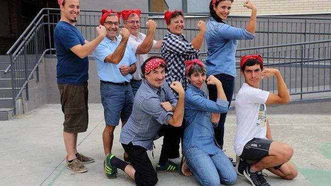 La lucha de la mujer por la igualdad es el tema principal de la propuesta. “Descubrieron que podían trabajar y hacerlo o igual o mejor que los hombres durante su ausencia”, pero a su regreso les quitaron ese derecho. “Todo el equipo se ha documentado para subrayar esa idea”, incide Gutiérrez. Así, el director musical, Asier Zabalza, les contó que durante la guerra proliferaron las bandas de música femeninas y ha escogido el Sho Sho Baby, de las Andrew Sisters, como tema central. R&R recordó cómo antes de la contienda era más habitual ver a blancos y negros bailando juntos, pero que durante el conflicto eso prácticamente se prohibió. Ana Ibáñez, asimismo, ha diseñado un vestuario acorde con el momento. “Hemos querido que todos los elementos que cada uno iba aportando se fueran incorporando al proyecto; en este caso, vimos que el trabajo habitual de dirección no era competente, sino que hemos ido integrando el talento de los distintos miembros del equipo”, destaca Susana Gutiérrez, que insiste en que lo que se verá el sábado a las 20.00 horas en el colegio no será un montaje, sino una pequeña muestra de la investigación. “Vino el director del festival y nos dijo que teníamos que montar algo; al principio iba a ser en la estación de tren, pero no llegaron los permisos y al final será aquí, en el colegio”, añade.