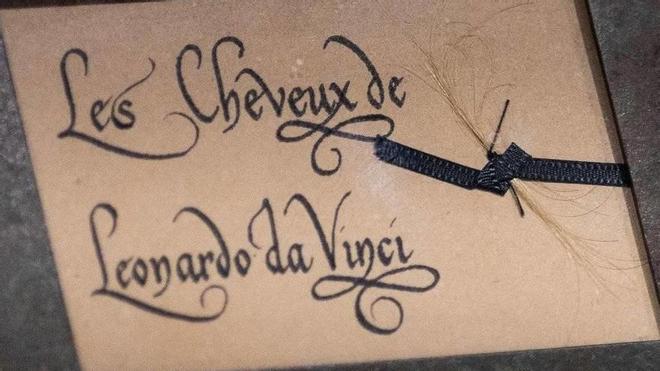 El museo es una pequeña colección con documentos que pretenden arrojar luz en la vida del humanista, aún envuelta en cierta aura de misterio, y la pieza más importante es un pequeño marco que conserva algunos pelos bajo el lema Le cheveux de Leonardo da Vinci. Son solo unos pocos pelos blancos atribuidos al humanista y comprados a un coleccionista estadounidense cuya identidad no ha sido revelada, aunque la veracidad de los restos debe ser puesta entre “muchos interrogantes” y ser estudiada científicamente, sostuvo el director del museo, Alessandro Vezzosi.