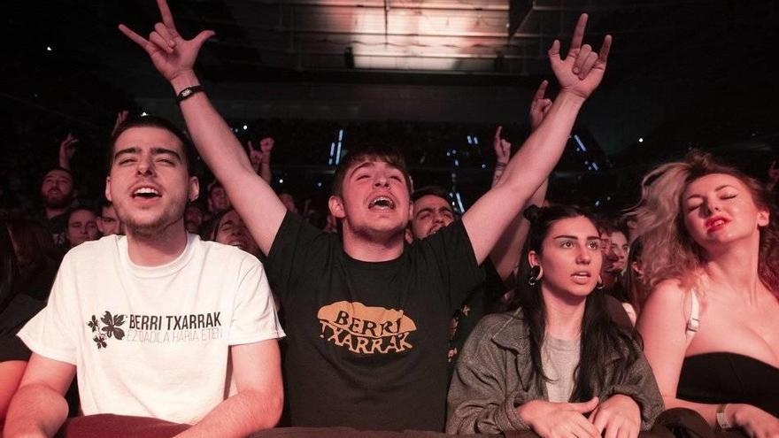 Abrió la noche Nizuri Tazuneri, calentando un Arena a cuyo escenario, pasadas las 22.30 horas, saltó Berri Txarrak, respaldados por cinco pantallas y un gran equipo de luces. Pero antes de desatar su ciclón musical, Gorka Urbizu, David Gonzalez y Galder Izagirre se acercaron al borde del escenario para ofrecer un aplauso a sus asistentes. Era noche de emociones. Y de ahí, atacaron con Gelaneuria, detonante de una batalla musical y también emocional, sin apenas tregua -sello ya de los directos de la banda-, en la que continuaron con temas como Jaio.Musika.Hil, levantando los primeros puños al aire. Siguieron temas como Izena izana ezina, Spoiler y Payola en una noche en la que la emoción prácticamente ató a Gorka al silencio, que apenas pronunció un “eskerrik asko” y “gabon” durante las primeras canciones. El tsunami de rock continuó con Kanta goibelak y Zertarako amestu, que levantó las primeras linternas de móvil en una velada en la que, al cierre de esta edición, arreciaba la tormenta musical. Y emocional. Esta noche, segundo asalto. Y lágrimas, más.