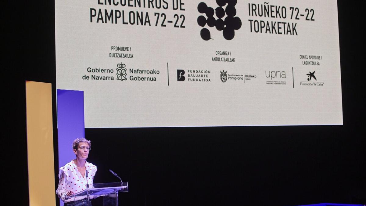 La presidenta del Gobierno de Navarra, María Chivite, ha participado en el primer coloquio de los Encuentros de Pamplona 72-22 / Iruñeko 72-22 Topaketak, en donde ha defendido la importancia del diálogo como “la única manera de llegar a un entendimiento”.