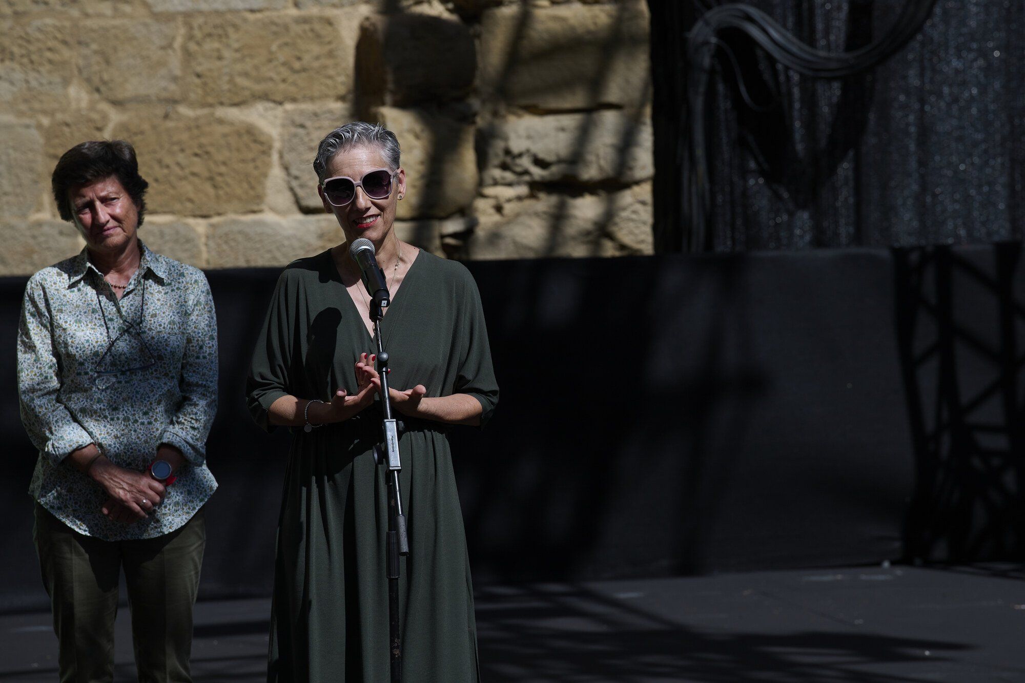 Presentación del festival de teatro de Olite con presencia de representantes de compañías participantes; también Ignacio Apezteguía, las codirectoras del festival y representantes de Beire, Tafalla y San Martín de Unx