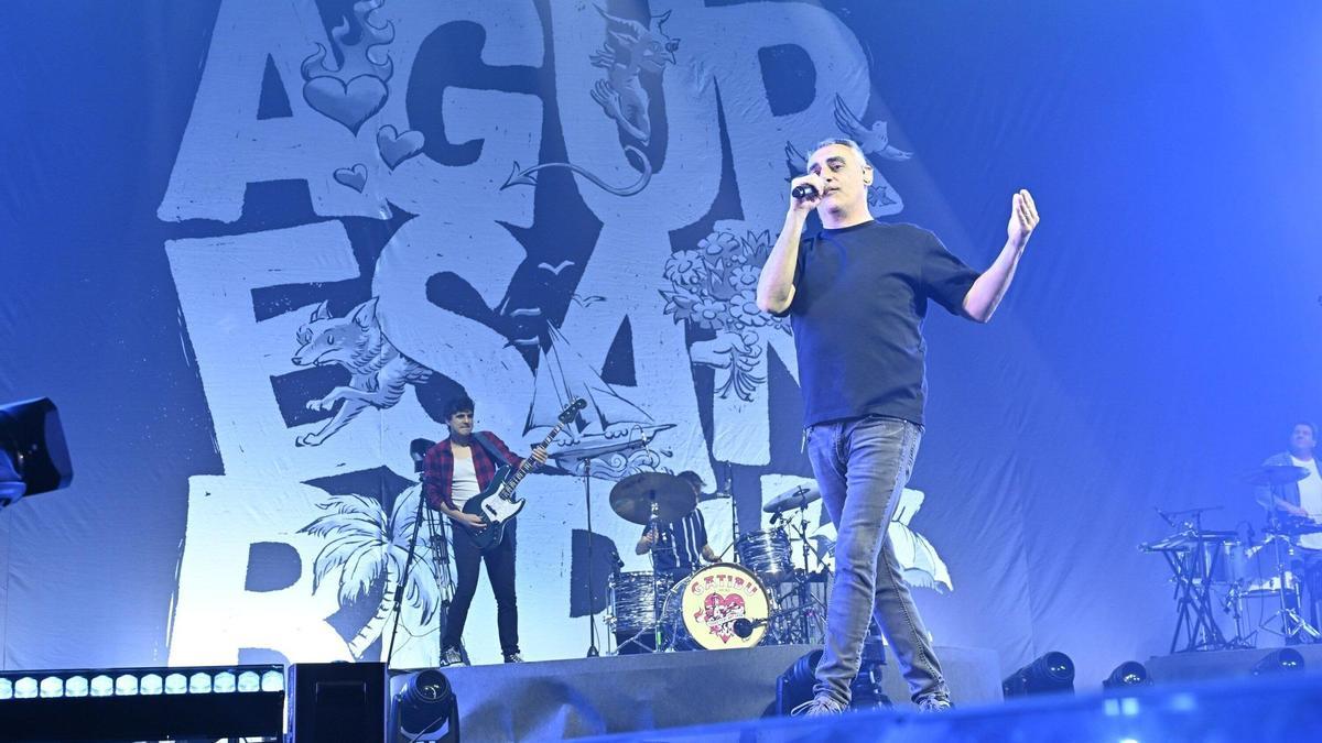 El trío superviviente, Alex, Haimar y Gaizka, ampliado en los últimos años por la guitarra de Xabi Bengoa y el bajo ya asentado de Javi Alzola, hijo del saxofonista Javi Fitipaldi, arrancó fuerte con la declaración de principios de Bixotza suten –con ese verso: “no tenemos mucho tiempo por delante”–, enmarcado en un enorme escenario con dos alturas bañado en luces de rojo infernal y un corazón palpitando en las pantallas laterales redondas. Al fondo, el lema de la gira: Agur Esan Barik.