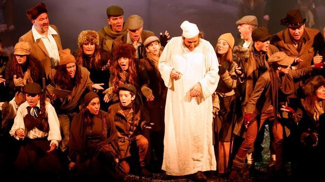 Con algún añadido que la enriquece todavía más, como la poderosa estructura que preside la puesta en escena, e, incluso, el movimiento de actores, consolidado milimétricamente en ese espacio. Ciertamente los números corales, que además, se desarrollan en ese aroma dancístico de los musicales, hacen las delicias de los más pequeños; pero es la intervención de los solistas, con García Noáin, a la cabeza, y el magnífico hilván de los tres fantasmas, los que completan y consolidan todo como ópera, o sea arte total. G. Noáin, tiene muy bien asimilado el rol de Scrooge, teatralmente lo borda, y musicalmente, luce potencia y autoridad.