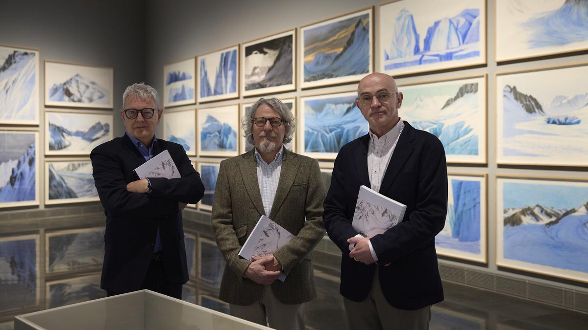 "El arte es una buena manera de cuestionarnos el modo en que nos quieren vender la imagen del mundo", una herramienta "para volver a pisar la tierra, a sentir el frío de la nieve..." Sobre todo hoy, cuando la realidad se está construyendo en el entorno digital", al margen de lo que podemos ver, tocar, oler, saborear... Esta afirmación de Jesús Mari Lazkano está en la base de Natura Fugit, el proyecto que ha trabajado durante los últimos cinco años dentro del programa Tender puentes del Museo Universidad de Navarra y que el artista guipuzcoano ha materializado en un cortometraje de animación y en una exposición con 150 dibujos, que, a su vez, contienen, capa sobre capa, los cerca de 3.000 que realizó durante este tiempo sobre el glaciar Mer de Glace, en Chamonix (Alpes). Muchos de ellos, in situ.