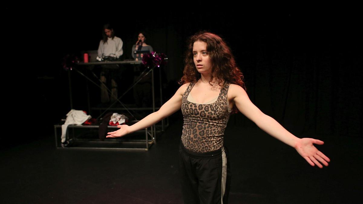 Para ello, se han aprovechado de la figura del comentarista como uno de los hilos conductores de la pieza en todos los sentidos. De esta manera, también entró en juego Izai Rodríguez como mirada externa y encargada del espacio sonoro: “Hicimos una investigación acerca de cómo sería la voz, el ruido, el silencio y los sonidos de este comentarista. Y, de alguna manera, hemos conseguido unir en nuestros tres lenguajes –lo coreográfico en el caso de Paula; el sonido y la música, en el caso de Izai, y lo dramatúrgico y el texto, en el caso de Ane– las distintas referencias del mundo deportivo. Tanto las formas de comentar en las distintas disciplinas, los sonidos que se van construyendo durante la pieza (porque Izai está en directo mientras se van dando las escenas) y gracias a un micrófono con autotune que permite que se distorsione la voz, etc.”. Y el resultado de todo esto no es otro que una pieza conjunta en la que se aprecia la manera en la que han encajado sus tres lenguajes. “El comentarista está presente mientras Paula baila, y eso demuestra que hay algo que lo une todo. Durante el proceso fue como apareciendo, pero cada vez vimos más claro que esto es hacia dónde queríamos llegar”, explica.