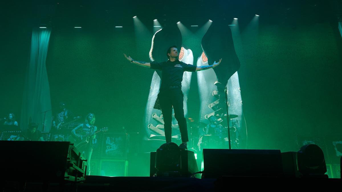 Dani Martín ofreció este sábado en el abarrotado Navarra Arena (vendió 13.800 entradas), un concierto para presentar el show que ha preparado en el marco de la gira 20 p*tos años, con la que está celebrando sus dos décadas de trayectoria musical. Durante la actuación, el cantante madrileño interpretó canciones de diferentes etapas de su carrera, tanto las que lideró desde El Canto del Loco (Son sueños, Zapatillas) como las que defendió en solitario (Cero, Dieciocho, La mentira).