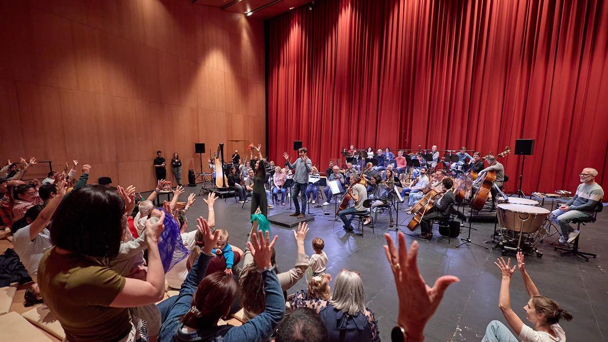 En esta experiencia inmersiva, el público ha compartido espacio en el escenario de la Sala Principal del auditorio Baluarte con la Orquesta Sinfónica de Navarra, dirigida por Javier Huerta. Este formato de cercanía permite a las familias sentirse parte activa del espectáculo e interactuar con la música.