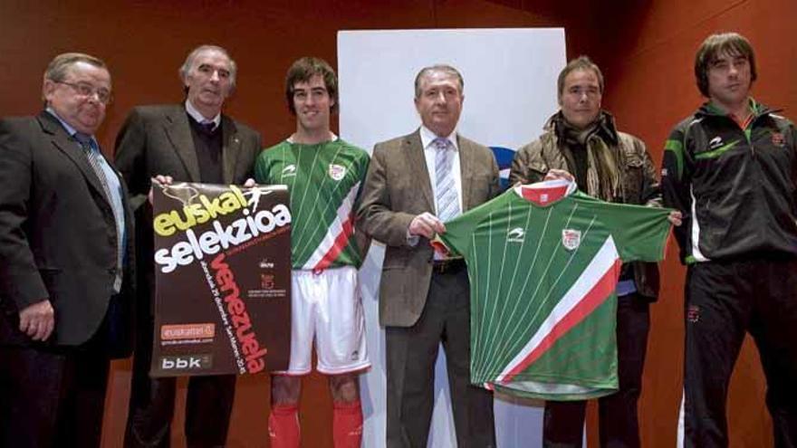 Ayer se presentó la nueva indumentaria de la selección de Euskadi para el encuentro en San Mamés del día 29 -20.45 horas, ETB 1- y algunos detalles referentes al partido. La lista de jugadores será dada a conocer el próximo viernes y estará compuesta por 22 futbolistas. De la citación de Iribar y Etxarri sólo se sabe que Amorebieta, el central del Athletic que también cuenta con nacionalidad venezolana, estará con la Euskal Selekzioa. Los precios de las entradas oscilarán entre los 12 y los 23 euros.