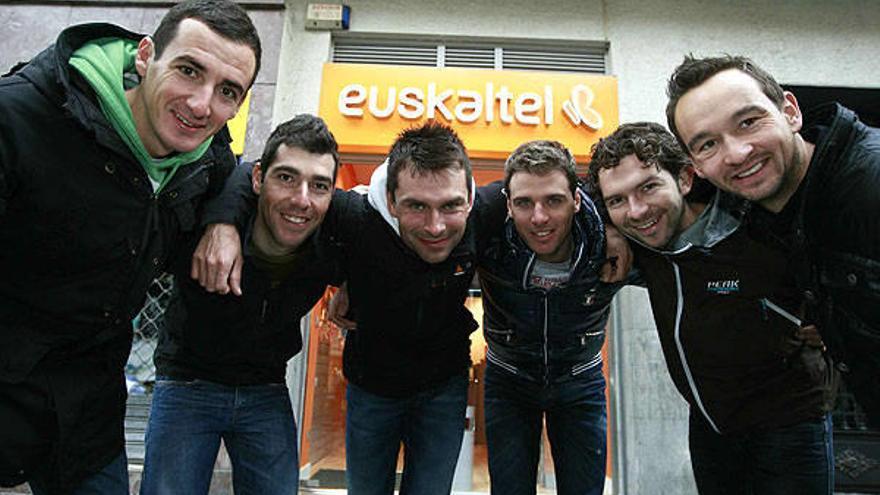 La mañana del lunes descubre a seis tipos en un bar cercano a la Alhóndiga (Bilbao) repitiendo palabras en euskera. Dicen txirrindulari, zelan zaude?, kaixo... Preguntan con curiosidad y les trata de instruir Álvaro González de Galdeano, que recorre el camino inverso del idioma y explora su inglés mientras hace de guía cuando el grupo baja a Bilbao a arreglar sus papeles de trabajo en un día gris que hace aflorar el humor de Ricardo Mestre. "Hoy para ustedes será un día de verano y playa, ¿verdad?". Algo ha escuchado el portugués sobre Bilbao. "Que es lluvioso y frío". Y que, "¿es la capital de Euskadi?". Le dicen que no, que esa es Vitoria. "Aaaah". Los demás que le acompañan en su paseo por la capital vizcaína -los alemanes Steffen Radochla y Andre Schulze, los eslovacos Robert Vrezer y Jure Kocjan y el griego Ioannis Tamouridis- no saben mucho más sobre Euskadi. Que es la cuna del Euskaltel. Y, recuerda Tamouridis, que hay un club de fútbol que se llama el Athletic que le han dicho tiene una afición tan apasionada como la de su Paok Salonica.