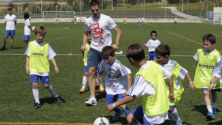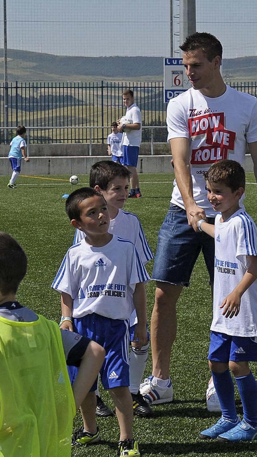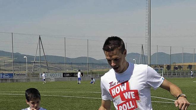 PAMPLONA. El jugador del Chelsea y de la Selección Española de fútbol, César Azpilicueta, ha estado rodeado de niños durante la presentación este martes en la localidad navarra de Zizur Menor de su primer campus de fútbol, que lleva su nombre.