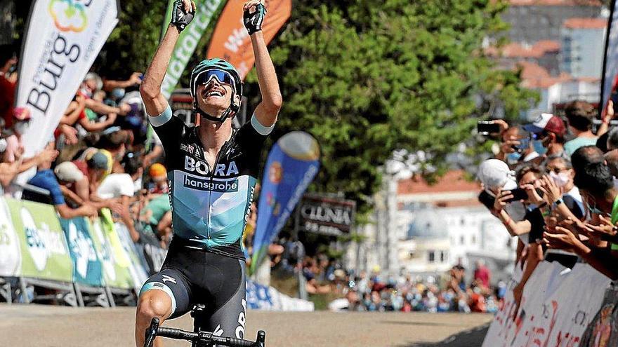 El corredor austriaco Felix Grobschartner, del Bora-Hansgrohe, es el primer líder de la Vuelta a Burgos, tras adjudicarse este martes la primera etapa de la ronda castellana, con salida y meta en Burgos y sobre 157 kilómetros, por delante del portugués Joao Almeida (Deceuninck-Quick Step) y el español Alejandro Valverde (Movistar Team).Felix Grobschartner sorprendió a los favoritos con un ataque seco a 800 metros de la meta en el inicio de la última rampa y se enfundó el primer jersey morado, con ocho segundos de ventaja sobre Almeida y el propio Alejandro Valverde, experto en este tipo de llegadas en cuesta.