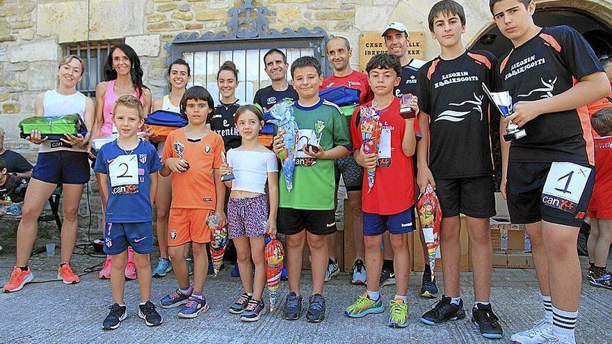 Después de dos años de parón por la pandemia, ayer se disputó la 18ª Carrera Popular Lizoain-Arriasgoiti, con buena participación y un gran ambiente popular. En la prueba sénior masculina, Mikel Akerreta (23:19) venció por delante de Sergio Fernandez (23:35) y Daniel Sanz (23:56). En la femenina, Maider Lizoain (28:44) superó a Henar Etxeberria (29:45) y a Nuria Elio (29:57). Los mejores locales fueron Adrián del Río y Sara Paternain. En la imagen, los mejores en todas las categorías.