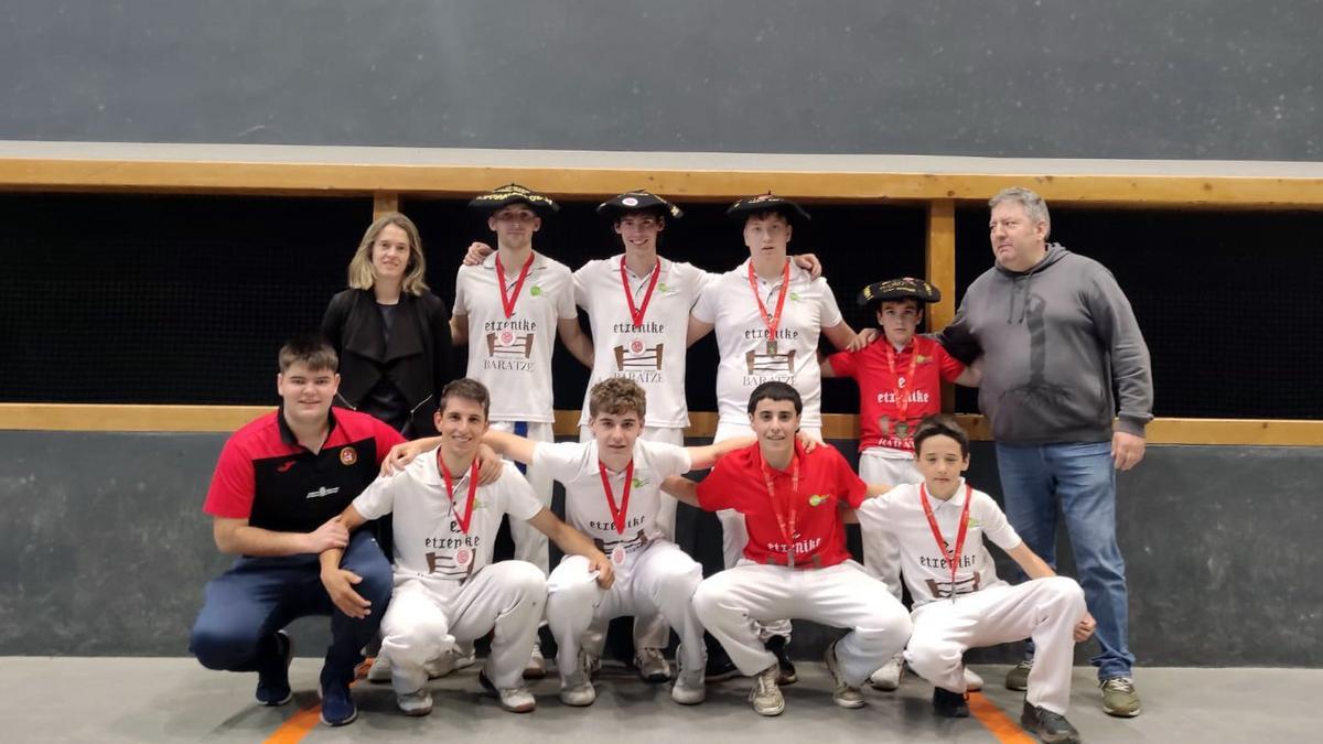 Así, este domingo el trinquete de Garralda acogió las finales de este campeonato en donde única y exclusivamente han participado pelotaris del Club Auñamendi. Dentro de los Juegos Deportivos de Navarra, en la modalidad cadete, Oihan Echeverria ganó por 2 a 1 (12-10, 10-12 y 8-5) a Hodei Mandacen en un partido largo y muy peloteado. En la modalidad juvenil, Peio Carballo se impuso con facilidad a Martxel Ziganda, ganando por 2-0 (15-7 y 15-7).