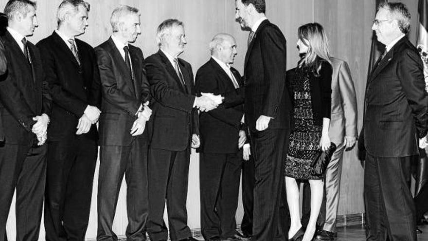 Y a lo que casi no sobrevive algún invitado no fue a la crisis, omnipresente en los discursos, sino al calor. La sala, donde grandes lonas ocultaban los anuncios de la exposición dedicada al Titanic, que permanecerá en Baluarte hasta enero, estaba más que caldeada. Quizás para que los invitados no murieran de frío - como ocurrió con decenas de pasajeros que viajaban en el transatlántico, hundido tras chocar con un iceberg-, la calefacción estaba desbocada. Hasta pasada la mitad de la ceremonia no se notó una bocanada de aire fresco en la sala, quizás como la que quiso llevar a la ceremonia la delegada del Gobierno, Elma Saiz, con una minifalda desacostumbrada entre las autoridades que acuden a los actos de la Casa Real. Mucho más discretos fueron el resto de invitados. Los tonos negros, grises y azules oscuros, propios de la temporada y del día, con una llovizna intermitente sobre Pamplona, fueron los protagonistas. Destacó, como siempre, doña Letizia, con un elegante vestido azabache cubierto de pedrería y sus acostumbrados tacones de vértigo.