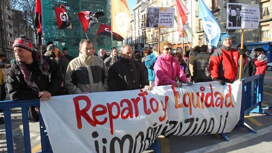 pamplona. Delegados de UGT y CCOO se concentraron ayer frente a la sede de la Confederación de Empresarios de Navarra para protestar contra la reforma laboral y exigir al Gobierno central que la "rectifique". La concentración se desarrolló bajo el lema "La movilización continúa. Recuperar derechos, defender el estado social" y en ella han participado los secretarios generales de UGT y CCOO, Juan Goyen y José María Molinero, respectivamente. Ambos líderes sindicales explicaron que esta concentración se enmarca en la jornada de movilización convocada a nivel europeo por la Confederación Europea de Sindicatos para hacer frente al "Plan para la lucha contra la crisis" que está lanzando la Comisión Europea "basado en el Ecofin y el Banco Central Europeo". Por su parte, los sindicatos CGT y Solidari escogieron la sede del Banco de España en el Paseo de Sarasate para protestar por las "políticas económicas y sociales que se están imponiendo a la ciudadanía". Las movilizaciones se inscriben en una jornada europea. Fotos: iban aguinaga y oskar montero