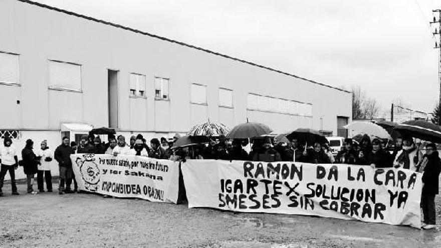 alsasua. Los trabajadores de Arfe e Igartex, pertenecientes al mismo grupo empresarial, se concentraron ayer en el polígono Ondarria de Alsasua para denunciar la situación que atraviesan estas dos empresas y reclamar soluciones. Por un lado, la plantilla de Igartex, con 28 trabajadores, acumula atrasos de cinco mensualidades y el anuncio del cierre de la empresa. En el caso de Arfe, los atrasos son de dos pagas y media además de la posible reestructuración de la plantilla, con 157 empleados.