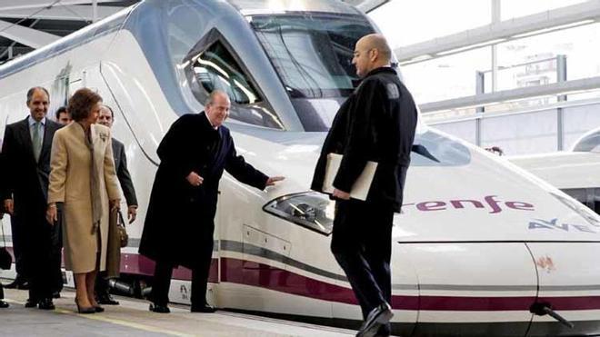 Don Juan Carlos y Doña Sofía han viajado en el tren inaugural del AVE Madrid-Valencia, acompañados del presidente del Gobierno, José Luis Rodríguez Zapatero, y del ministro de Fomento, José Blanco, entre otros invitados.