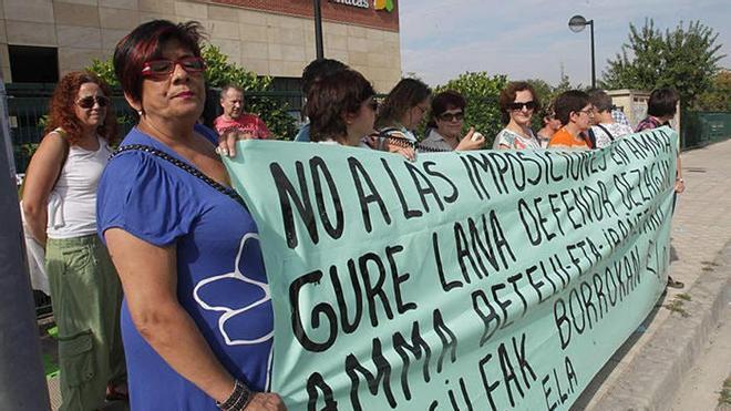 Las trabajadoras, que han portado una pancarta con el lema "No a las imposiciones en Amma", quieren denunciar con estas acciones que, tras la firma de un convenio para los centros que el grupo tiene en Pamplona (Oblatas, Mutilva y Argaray), las trabajadoras de Ibañeta y Betelu "se han visto abocadas al estatal, perdiendo gran parte de los derechos conquistados con la lucha de muchos años".