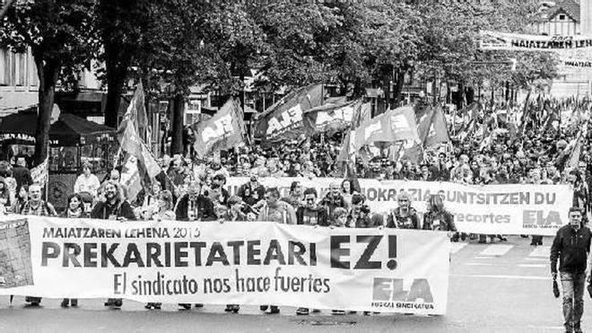 El sindicato celebró el 1 de Mayo con una manifestación en Bilbao que recorrió la Gran Vía bilbaína encabezada por una pancarta con los lemas Prekarietareari ez! (No a la precariedad) y El sindicato nos hace más fuertes. Según fuentes de ELA, cerca de 10.000 personas se sumaron a la movilización.