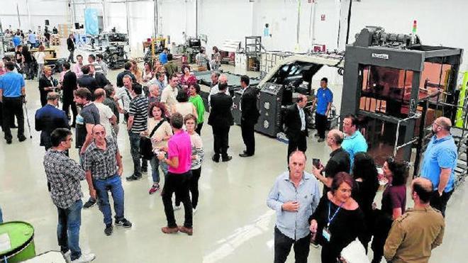 inauguración. Con la presencia de numerosos invitados, Gráficas Ulzama inauguró ayer sus nuevas instalaciones. Ubicadas en el polígono Areta, la empresa cuenta con otros 5.000 metros cuadrados que disponen de las últimas innovaciones en el sector de la imprenta comercial y que le permitirán dar un servicio completo a los clientes de packaging. La nueva división posibilitará a esta firma ofrecer un servicio integral al incorporar el taller de fabricación de troqueles y el departamento de diseño estructural. La cita fue amenizada por el monologuista Chema Ruiz. Foto: Javier Bergasa