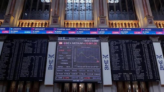 El Ibex 35 ha finalizado la jornada con una caída del 1,01% que le ha alejado de la cota de los 7.400 puntos que recuperó en la sesión anterior, lastrado por el temor a las consecuencias de los rebrotes por coronavirus.Este martes se ha conocido que el PIB del Reino Unido registró una caída del 19,1% entre los meses de marzo y mayo, los más afectados por las restricciones y medidas de confinamiento impuestas para contener la pandemia de coronavirus, aunque en el mes de mayo logró repuntar un 1,8%.
