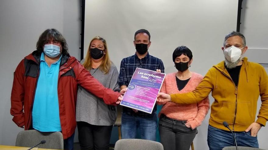 Los sindicatos ELA, LAB, junto a Steilas, ESK, Etxalde e Hiru, han convocado manifestaciones en las capitales de Euskal Herria el próximo 30 de enero en contra de la reforma laboral acordada entre el Gobierno español, la patronal CEOE, y las centrales UGT y CC.OO., a la vez que han evitado pronunciarse sobre una posible huelga general.